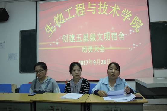 2017年9月28日下午,英国beat365官方网站于3号实验楼414举行了创建五星级文明宿舍动员大会。beat365官网分团委书记杨金凤、学生会主席孙庆琳、李晓甜和学生会各部部长及大一至大三各班班委、团委成员共计70余人参加了本次会议。