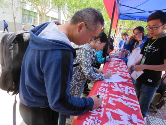 此次活动紧紧围绕环保主题,活动前,通过展板和海报在校内进行了活动预告及宣传。本次活动的主要内容是在活动现场对过往的师生发放环保知识宣传单并进行倡导;环保知识问答,根据答对的比例奖励不同的礼品;倡导活动现场过往的师生在环保主题条幅上签名;环保主题海报展及评选等。