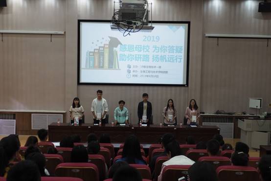 交流会上,来自各专业的15级优秀毕业生:翟峰(湖南师范大学录取)、魏琳璐(云南师范大学录取)、周亚萍(西北师范大学录取)、赵楠楠(青岛农业大学录取)、杨国辉(福建农林大学录取)等五名同学详细地分享了自己在大学各阶段的学习、工作和生活经历,重点介绍了各门课程的不同学习方法和自己的考研准备过程。