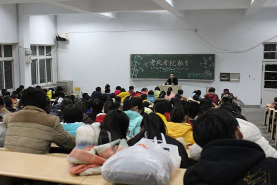 考风是学风的体现,良好的考风带动优良的学风。期末临近,beat365官网将考风考纪教育前置,提醒学生早做准备,趁早复习,迎接期末考试。避免学生考前临时抱佛脚,心存侥幸,考试作弊的现象发生。在安排各班召开“考风考纪教育”主题班会的基础上,12月17日晚,beat365官网在2号教学楼122阶梯教室召开了““英国beat365官方网站考风考纪教育大会”,2015级学生200余人参加了教育大会。