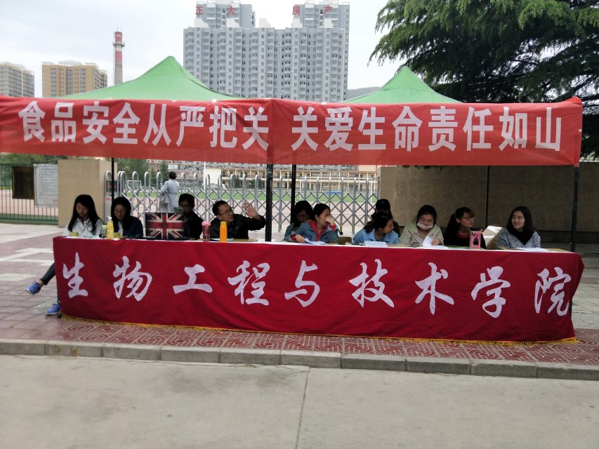 在英国beat365官方网站“安全周”期间,beat365官网15级食品质量与安全一班承办英国beat365官方网站第三届食品安全展活动,以“关注食品安全真爱身体健康”为主题的活动于4月11日在英国beat365官方网站东操场门口如期举行。此次活动秉承“国以民为本,民以食为先,食以安为先”的主旨普及食品安全相关知识,通过趣味问答、宣传手册发放以及知识宣讲提高师生对食品安全的认识程度。