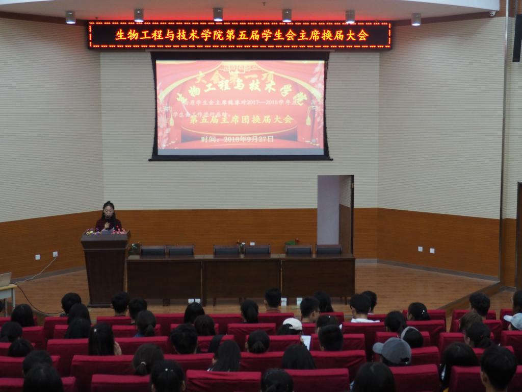 2018年9月27号下午,英国beat365官方网站在3号报告厅举行第五届学生会主席换届大会,出席本次活动的人员有:英国beat365官方网站党总支书记马纲、分团委书记杨金凤、辅导员姬静、王镛、学生会全体成员、18级全体学生。会议由孙文媛主持。