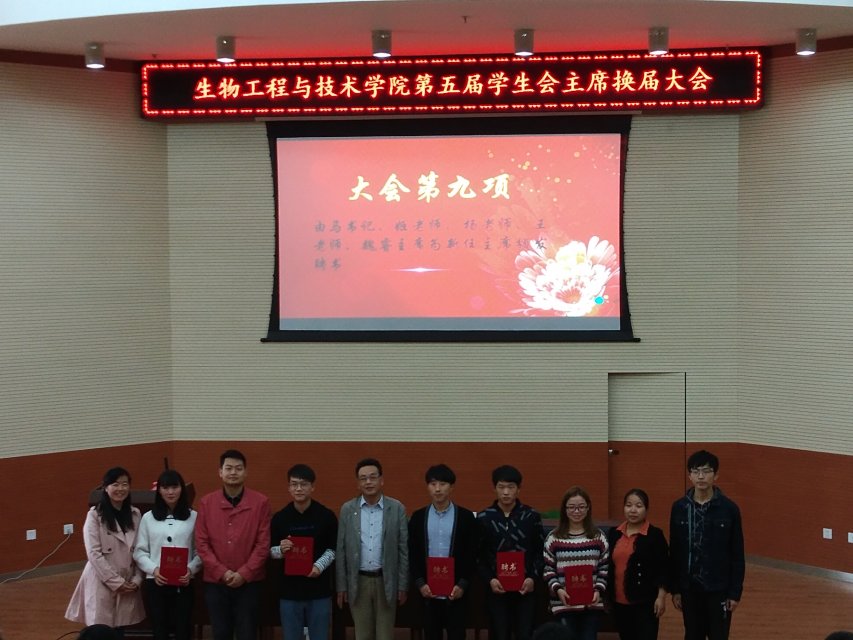 会议首先由上届主席魏睿对2017-2018学年度学生会工作进行总结,回顾了这一年学生会的艰辛与喜悦,同时也对新一届学生会全体成员提出了希望与要求,希望新一届学生会成员戒骄戒躁,提高个人素养,处理好学习与工作的关系,扎实做好每件事,拥有上进心,使学生会越来越好。接着8位候选人在3~ 5分钟竞选中阐述自己在学生会的收获与工作经验,并做出了自己当选后的展望。秉承着公平公正公开的原则,由辅导员及学生会各部门部长投票选举主席,最终确定董福佳担任学生会主席,冯海丽、陈龙飞、张慧、王启斐担任副主席,并颁发聘书,他们表示会以饱满的热情投身于学生会的工作中,尽自己最大的努力把学生会建设成为能密切联系同学、值得同学信赖、为同学办好事的部门。