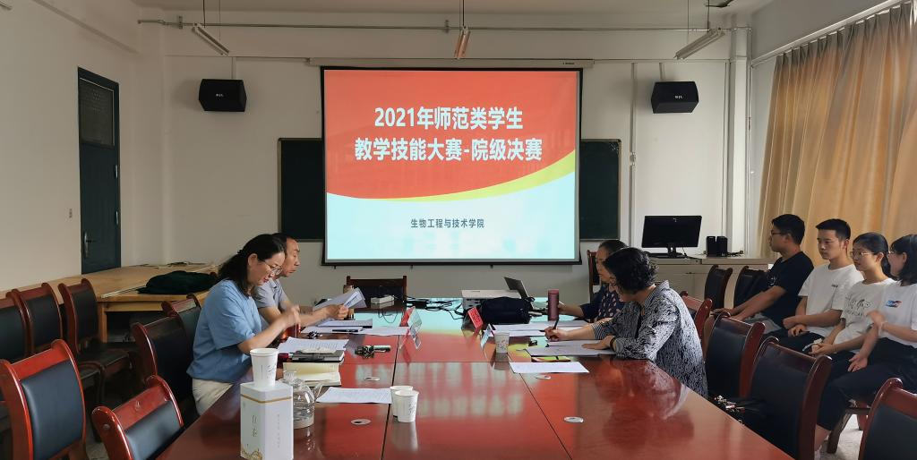 根据学校《关于组织开展师范类学生教学技能大赛的通知》(天师院教字[2021]39号)文件精神,为进一步增强师范生实践应用能力和创新能力,彰显师范特色,强化学生教学技能,培养具有高尚师德修养、扎实专业知识、优秀教学技能、宽阔学术视野、先进教育理念、独立研究能力的卓越教师。beat365官网于2021年7月4日下午在举办了2021年生物科学专业(师范类)学生教学技能大赛院级决赛,2018、2019、2020级生物科学专业的9名同学参加了比赛。