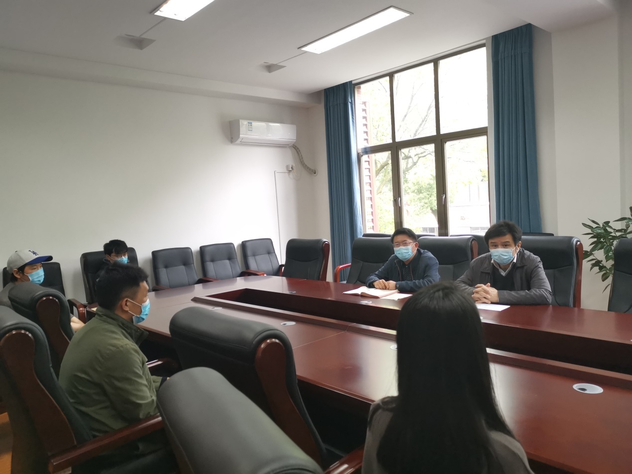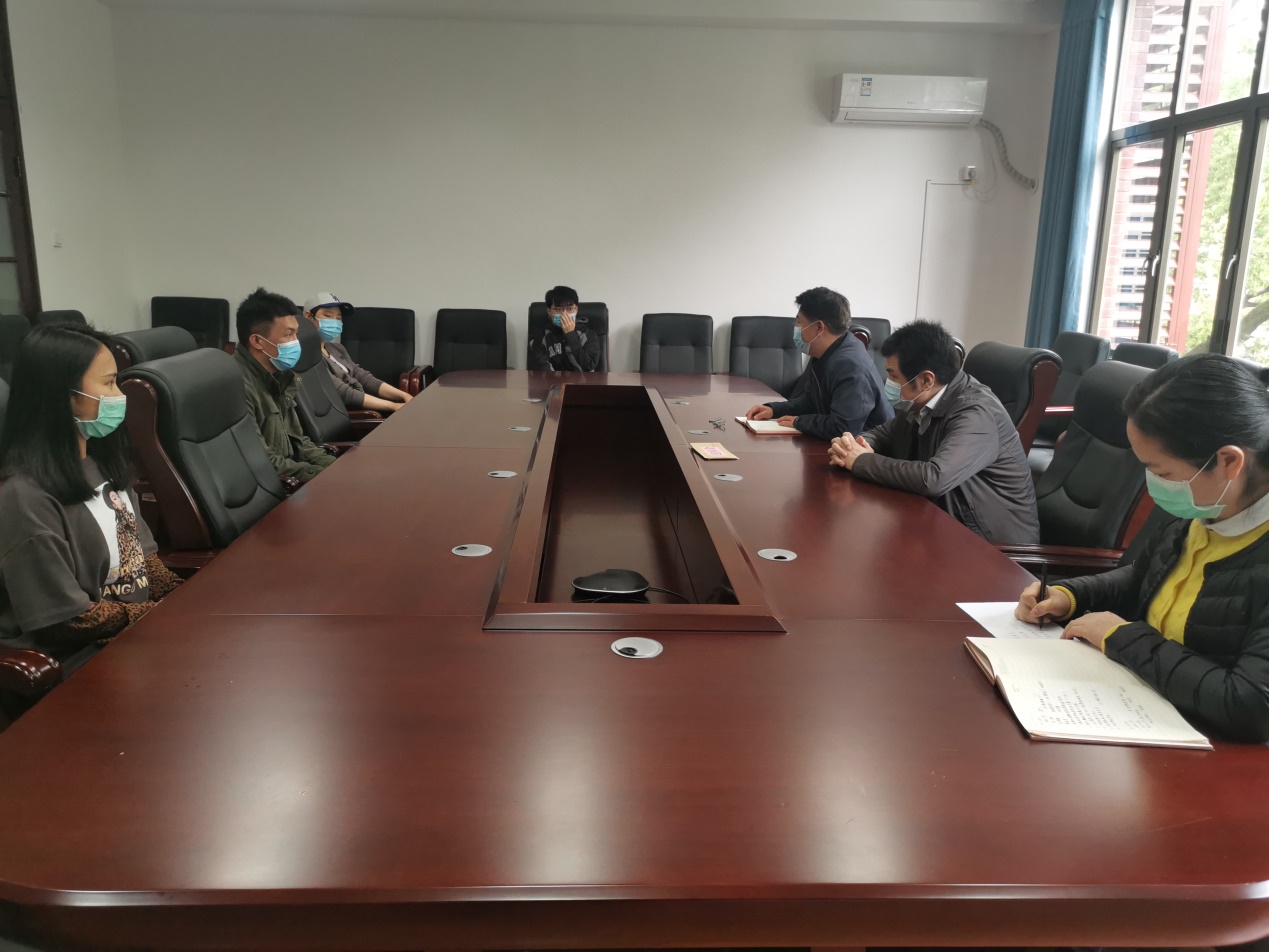 4月23日,kaiyun云开登录入口召开留校本科学生座谈会,党委书记聂国军、院长潘敏、辅导员谢君、庄韫帆和四名留校学生参加会议。