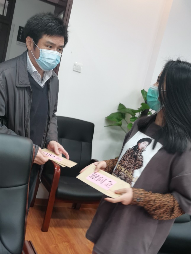 最后,学院领导为留校学生发放慰问金。聂书记强调学院把学生成长成才作为一切工作的出发点,希望同学们主动适应疫情下常态化的学习和生活,与家人保持良好的交流,调整心态,坚定信心,全院师生一起共渡难关。