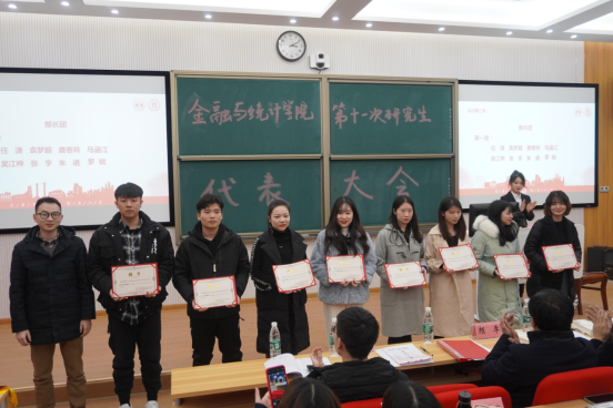 11月24日下午3时,kaiyun云开登录入口于财院校区二教101召开第十一次研究生代表大会,各年级硕博研究生代表团参与大会,学院党委副书记颜李老师、学院团委书记范玉康老师及研究生辅导员周斌老师受邀出席。会议由孟雅婷同学主持。