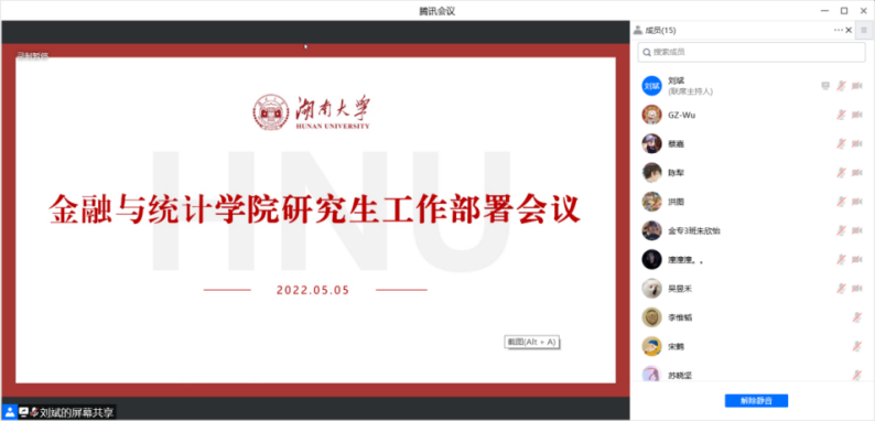 2022年5月5日晚,kaiyun云开登录入口研究生骨干工作部署会议通过腾讯会议在线上召开,就研究生疫情防控、安全教育等工作进行安排。会议由2021级研究生辅导员刘斌主持,研究生各班级班长参加。