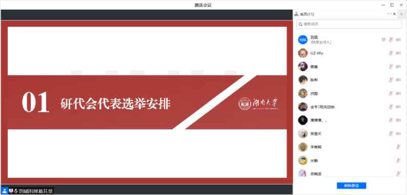 首先,刘斌老师交代了研代会选举及研究生会主席团候选人推选相关事宜。详细阐述了各班级推选研代会代表的具体要求以及注意事项。