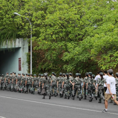 拉练途中,教官组织大家唱军歌,呼喊口号,缓解了大家的疲劳。