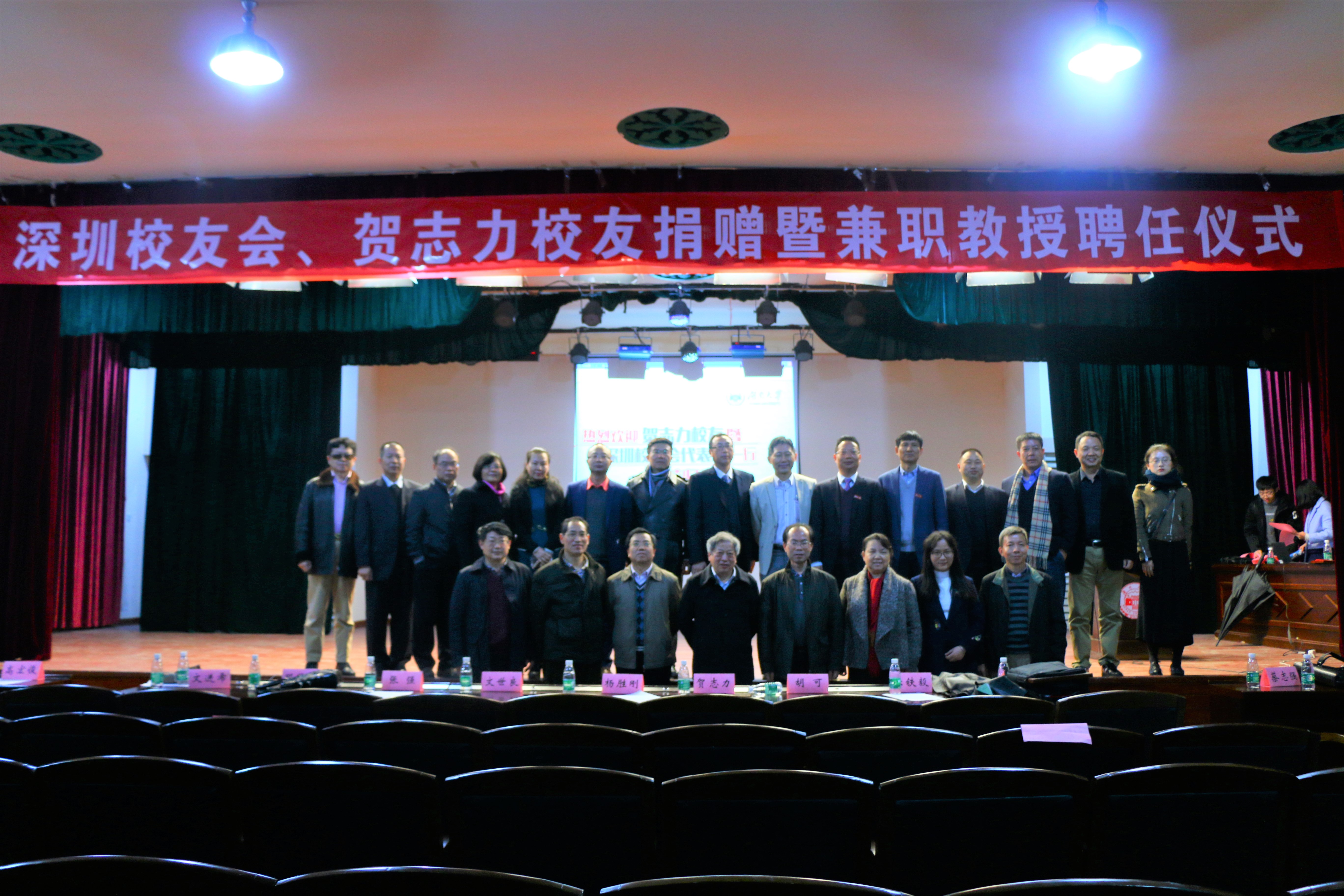 下午15点,深圳校友会、贺志力校友捐赠暨兼职教授聘任仪式在kaiyun云开登录入口财院校区礼堂隆重举行。仪式由金统院党委书记晏艳阳教授主持,深圳校友会代表团、杨胜刚副校长、张强理事长、教务处、校友办、基金会、金统学院、经贸学院、工管学院等单位负责人和金统学院、经贸学院、工管学院等各学院学生代表,共360人列席,共同见证了捐赠仪式的成功举行。本次活动由kaiyun云开登录入口主办,院校友服务中心负责具体事务和会务工作。