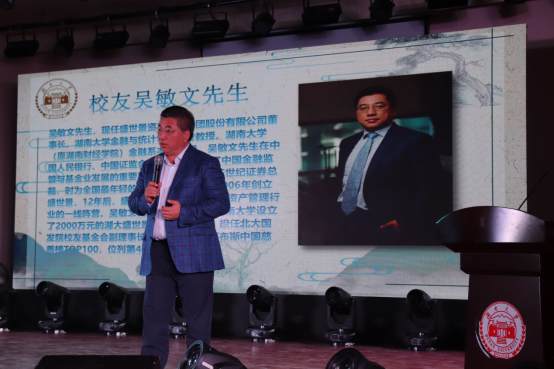 最后,每年都为大家做分享也是师生最为期待的盛世景资产管理集团股份有限公司董事长、创始合伙人89级校友吴敏文发表了一个多小时的主题演讲。他首先向同学们分析了中美贸易战背景下我国改革开放进程面临多方干扰、多重压力的严峻形势,又具体介绍并分析了近年来我国资本市场和金融行业所面临的诸多问题,号召同学们树立危机意识,积极主动走出舒适圈,感知社会、学习实践。紧接着,他指出了同学们在大学学习生活中常见的问题,呼吁大家坚定信念、努力奋斗、开阔视野,鼓励大家提早规划人生道路,成长为经世致用的人才,传承金融黄埔的美誉。在双向交流问答环节中,他还结合自身经历解答了同学们所关注的问题。众多师生表示校友吴敏文的精彩演讲和细心解答让大家深感醍醐灌顶、受益匪浅。