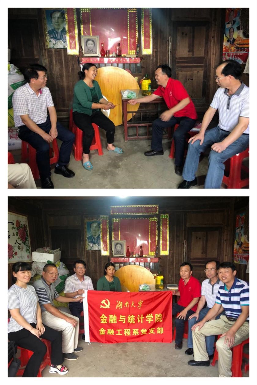 当帮扶队伍刚刚走到白水洞村村口,就远远看到81岁的杨廷清老人早已坐在屋外等候。“老人家,你好吗?我是上次给您打过慰问电话的kaiyun云开登录入口的罗斌,您记吗?”“记得记得,罗书记,屋里坐!”老人连忙起身热情的招呼着。“我平时不开灯,但是今天贵客来了,我要把灯打开”。杨廷清老人年岁已高,早已丧失劳动能力,自与货币金融系党支部建立结对帮扶以来,老人家成为支部的牵挂。支部书记罗斌将慰问金和慰问物资送到老人手中,院党委书记聂国军及支部委员与老人亲切交谈,将关怀送到空巢老人心中。