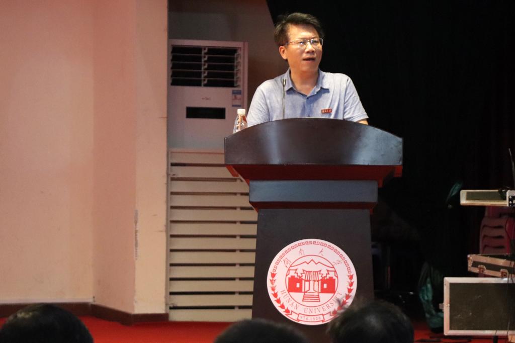 李承业同学作为高年级学生代表也分享了自己在大学生活中的经验。他认为大学是新的起点,同学们要尽快找到自己前进的方向,对生活保持好奇与热情,满怀伟大的情怀与抱负,以优秀学子为榜样,脚踏实地地走下去。他希望学弟学妹们在千年学府深厚校园文化的浸润中,真正做到“实事求是,敢为人先”。