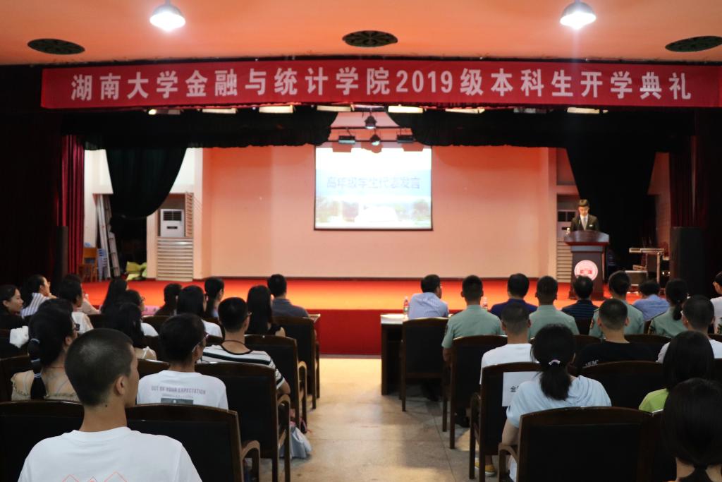 8月25日晚7点,kaiyun云开登录入口2019级本科生开学典礼在财院校区小礼堂隆重举行。kaiyun云开登录入口党委书记聂国军、党委副书记刘周平、副院长陈迪红、副院长吴志明、副院长王修华、副院长李海奇、院长助理张立军、各年级辅导员和部分教师出席了本次典礼。