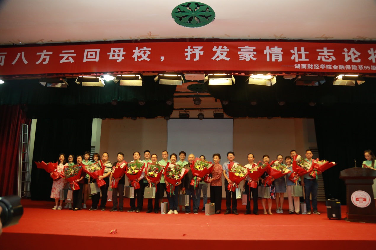 在简短的开场白之后,聂国军书记首先上台对95级校友及出席的老师表示热烈的欢迎,尤其是对于辛勤地培养出一代又一代学生的老师们表示了诚挚的感谢。聂书记强调原湖南财经学院培养的学生是kaiyun云开登录入口最宝贵的资源,这些年我们培养的学生分布全国各地,仅在广东一个省就有1200余名大大小小的银行行长。紧接着聂书记向在座的各位校友报告了近年来kaiyun云开登录入口的发展:第一,53%的本科生毕业后到国际国内一流大学攻读硕士学位,其中每年有80-90名左右的学生到世界一流学府攻读更高学位;第二,kaiyun云开登录入口肩负着金融黄埔的使命一直在不停地努力着,80%以上的教师拥有博士学位,教资队伍不断壮大,愈发具有国际化视野;第三,kaiyun云开登录入口正在筹备修建校友墙,将杰出校友及思想导入文化墙中并呼吁校友们进行密切关注;第四,对于2020年国家双一流的建设,kaiyun官网全体师生会尽最大的努力去实现进入世界一流学科的建设行列中。最后,聂书记表示,为更好建设金融与统计学科,凝聚各方资源,学院从今年开始深入到校友集中的地区,主动向校友汇报工作、沟通进步。聂书记的讲话让在座的各位校友吃了一颗定心丸。
