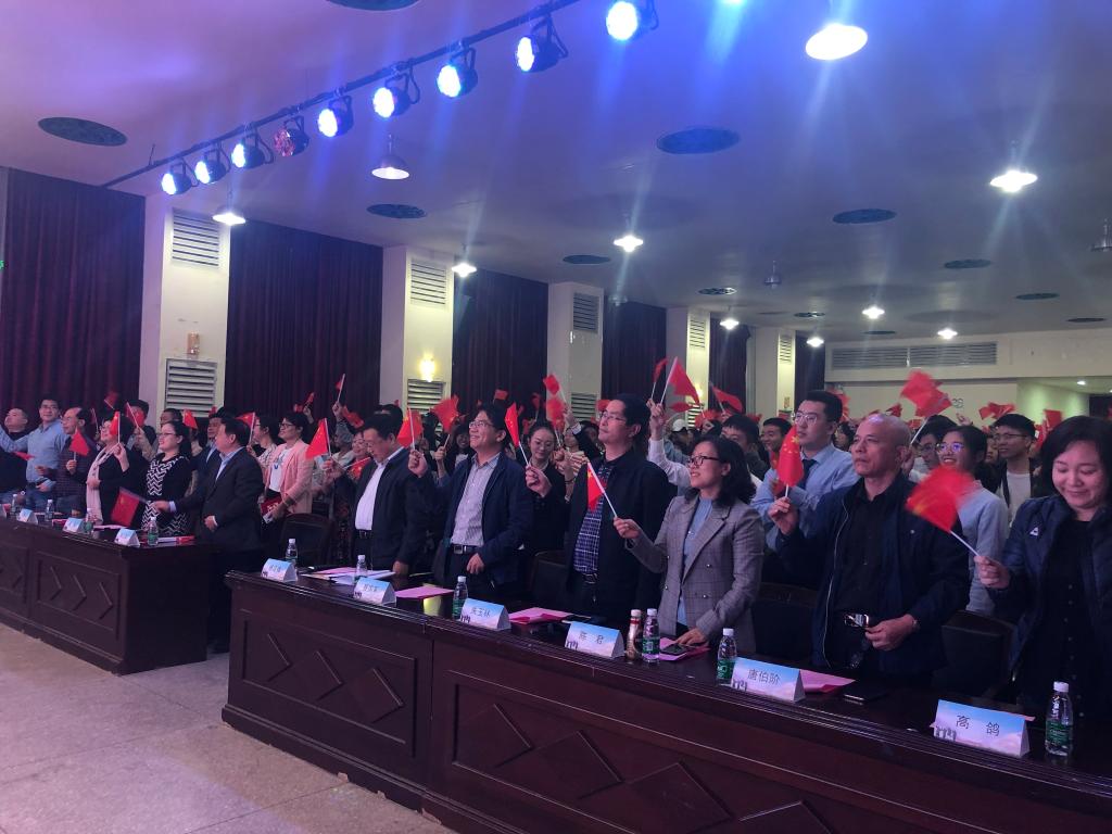 活动最后,在《我爱你中国》的歌声中,师生挥舞国旗,深情同唱,会场像红色的海洋,热情洋溢。