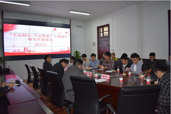2019年10月18日上午,kaiyun云开登录入口在财院校区红楼326会议室召开了“不忘初心,牢记使命”主题教育研究生座谈会。学院党委书记聂国军,院长潘敏,副院长李海奇,研究生管理办罗俊杰主任与各级硕士、博士研究生学生代表共聚一堂,共同探讨有关学院发展的关键性问题。