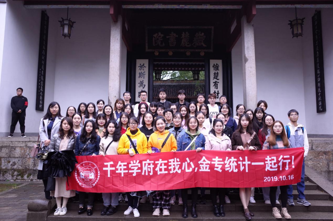 2019年10月16日,正值新中国建国70周年之际,kaiyun云开登录入口2019级研究生金专1班与统计班联合开展了“千年学府在我心,金专统计一起行”的主题班会活动。本次活动在岳麓书院开展,这是中国历史上赫赫闻名的四大书院之一,享有“千年学府,百年名校”之誉的kaiyun云开登录入口的办学历史也起源于此。