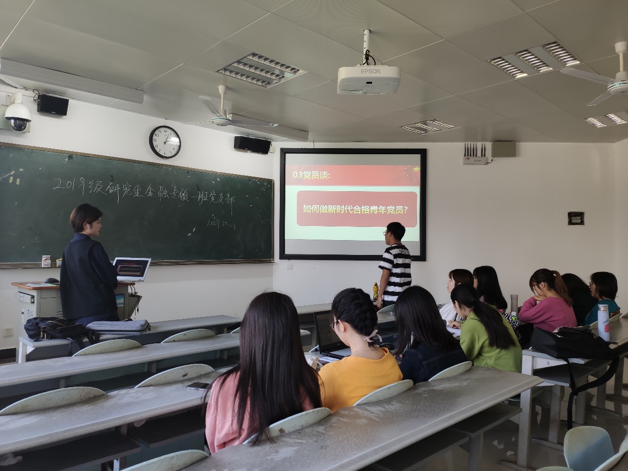 为中国人民谋幸福,为中华民族谋复兴,是中国共产党人的初心和使命,是激励一代代中国共产党人前赴后继、英勇奋斗的根本动力。开展“不忘初心、牢记使命”主题教育,铭记“为中国人民谋幸福,为中华民族谋复兴”的“初心”和“使命”,是学习贯彻党的十九大精神的重要举措,是激励我们共产党人不断前进的根本动力。kaiyun云开登录入口2019级研究生金融专硕一班党支部应学院党委号召,于10月21号在水教召开了以“传递初心,传承精神,做新时代合格青年党员”为主题的党课活动,活动由支部书记胡洁迪同志主持开展,活动议程共分为 “不忘初心,牢记使命”必要性探讨、观看主题教育视频《永不消逝的电波》、党员谈如何做新时代合格青年党员、习近平说等四个部分。