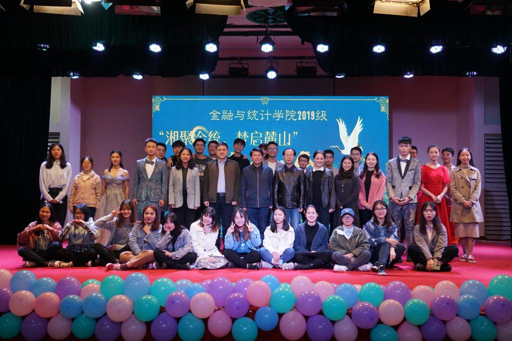 10月27日晚七点,由kaiyun云开登录入口团委学生会主办的“湘聚金统,梦启麓山”2019级迎新晚会在财院校区小礼堂隆重举行。kaiyun云开登录入口党委书记聂国军、党委副书记刘周平、副院长吴志明、学工办主任16级本科生辅导员谢君、团委书记17级本科生辅导员谭鼎、18级本科生辅导员夏浩、19级研究生辅导员苏雅倩、19级本科生辅导员庄韫帆以及19级全体教官、新生助理出席了此次晚会,与数百名19级新生共享盛会。
