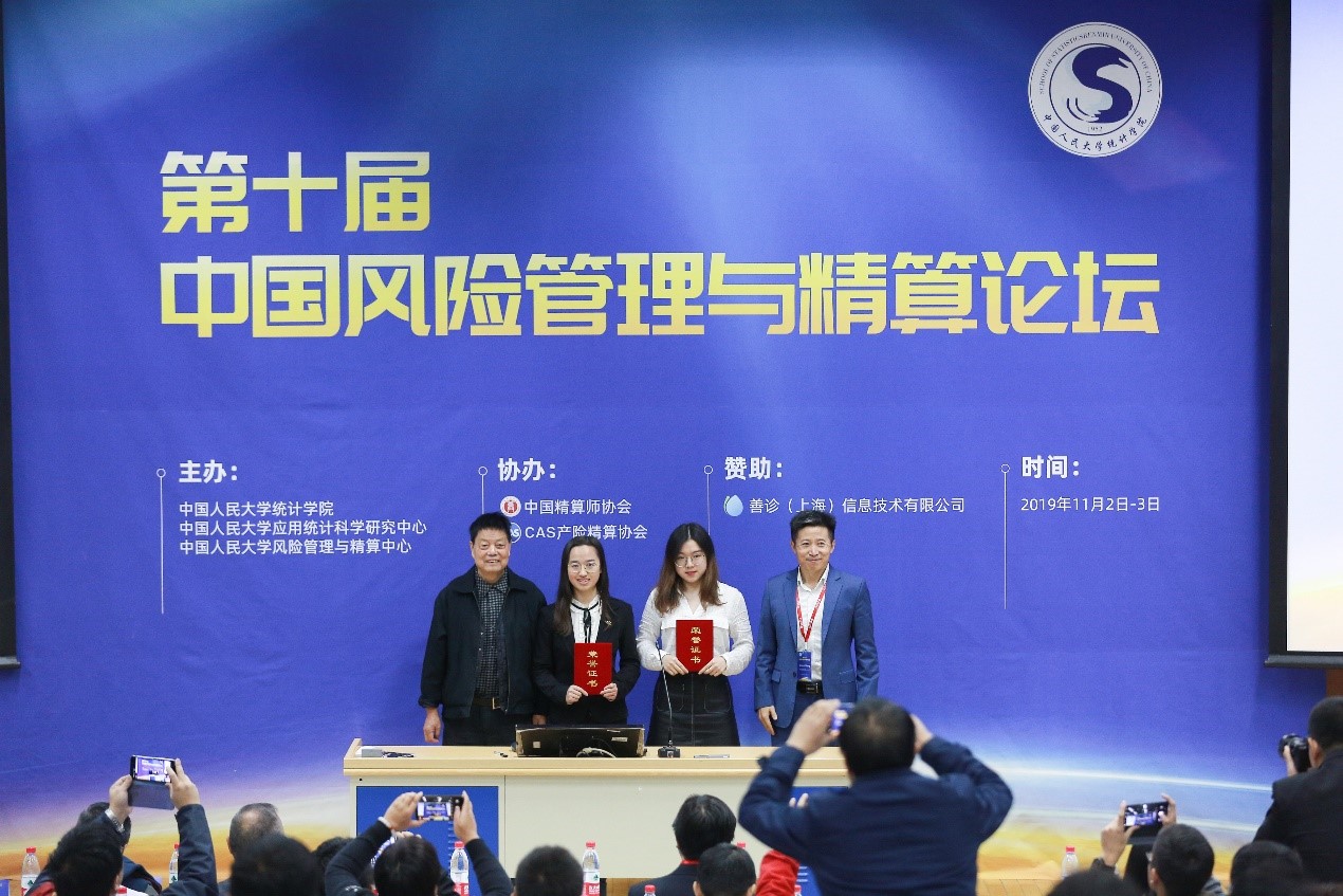 由中国人民大学统计学院、中国人民大学应用统计科学研究中心、中国人民大学风险管理与精算中心主办,中国精算师协会、北美产险精算师协会(CAS)协办的"第十届中国风险管理与精算论坛”于2019年11月2日- -3日在中国人民大学隆重举行。kaiyun官网保险系研究生申旭彤、周丹、杨江萍参会。