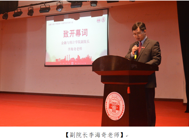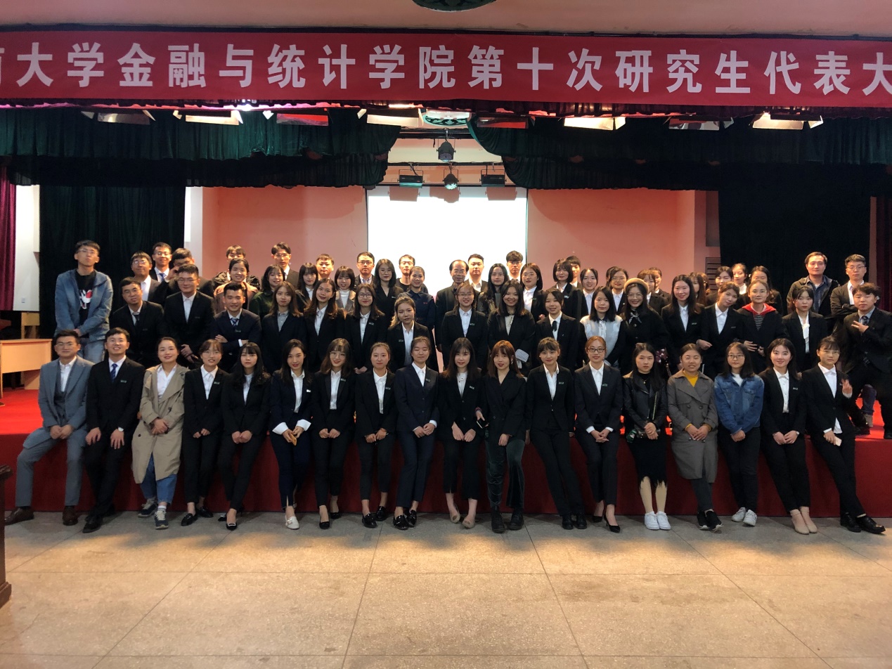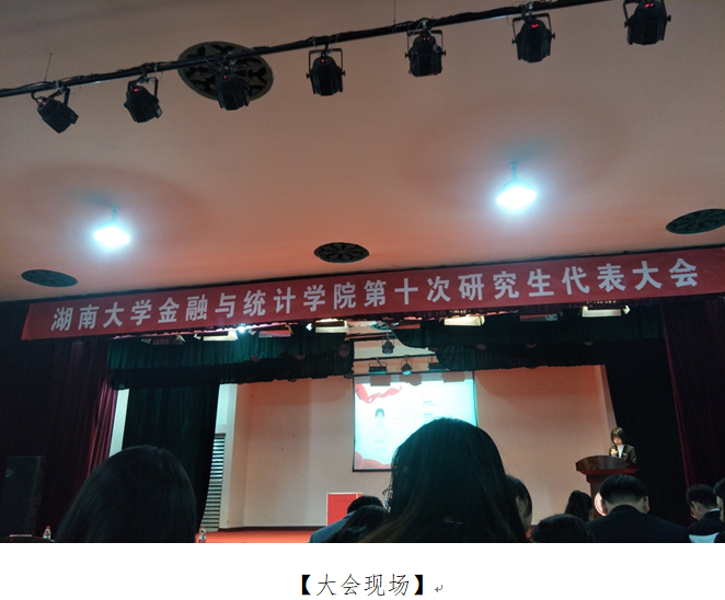 2019年11月13日晚,kaiyun云开登录入口第十次研究生代表大会于kaiyun云开登录入口财院校区礼堂召开。kaiyun云开登录入口党委书记聂国军老师、kaiyun云开登录入口党委研究生工作部综合管理科科长田锐老师、kaiyun云开登录入口党委副书记刘周平老师、副院长李海奇老师、研究生管理办公室主任罗俊杰老师以及学院各年级辅导员老师受邀出席大会。此外,与会的还有校研究生会主席、各兄弟学院研究生会主席、第九届研究生会成员以及各班推选的研究生代表。