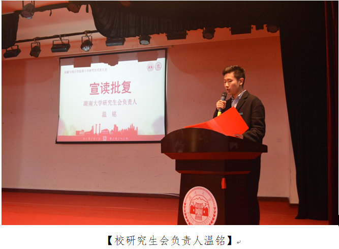 接着,校研究生会负责人温铭宣读《kaiyun云开登录入口研究生会关于同意召开kaiyun云开登录入口第十次研究生代表大会的批复》。