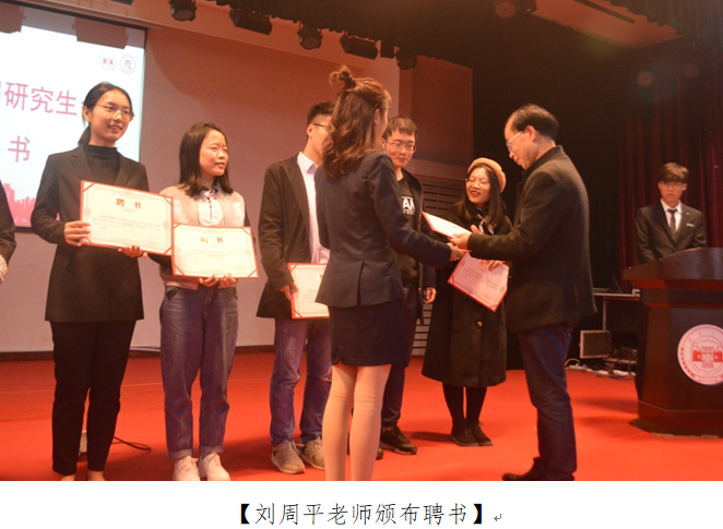 会议最后,由研究生辅导员苏雅倩老师宣读选举结果、党委副书记刘周平老师颁布聘书并致以闭幕词。刘周平老师希望新一届研会成员铭记全心全意为同学服务的宗旨,扎实工作、锐意进取,更好地团结带领广大学子,为学院发展、学术繁荣、社会进步与人民幸福贡献出自己的青春力量!