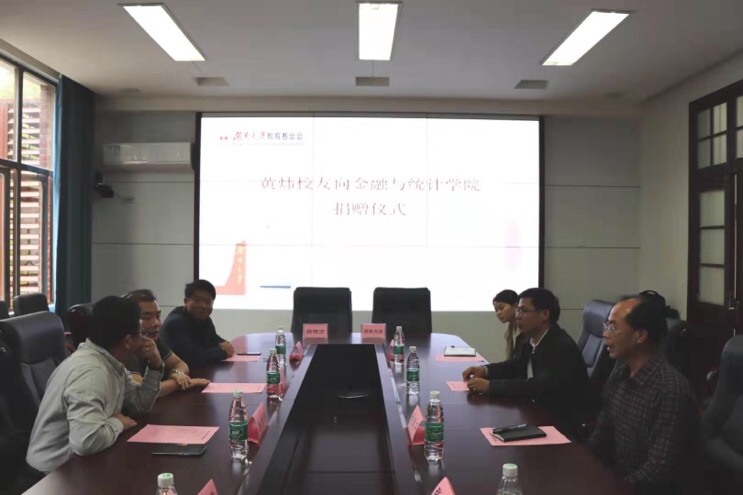 11月16日下午3:00,黄炜校友向kaiyun云开登录入口捐赠仪式于kaiyun云开登录入口财院校区kaiyun云开登录入口红楼二栋226会议室圆满举行。深圳市宝能投资集团有限公司高级副总裁、93级校友黄炜先生,校金融发展与信用管理研究中心主任兼首席专家杨胜刚教授,校教育基金会秘书长邓利华老师,kaiyun云开登录入口党委书记聂国军老师,党委副书记刘周平老师,kaiyun云开登录入口副院长王修华老师,kaiyun云开登录入口社会服务中心主任张学陶老师,副主任黄山老师,及教育基金会伍旺老师出席本次会议。