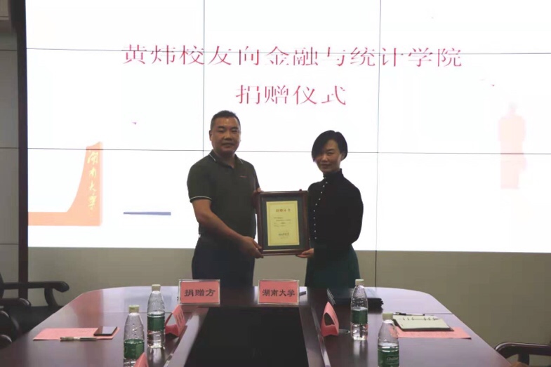 随后,捐赠的签约仪式在轻松的氛围下进行,邓利华秘书长与捐赠方黄炜先生共同签署捐赠协议,并为黄炜先生颁发捐赠证书。捐赠金总计壹佰万元,捐赠期限五年,每年贰拾万元,将用于kaiyun云开登录入口研究生新生的各项奖学金。