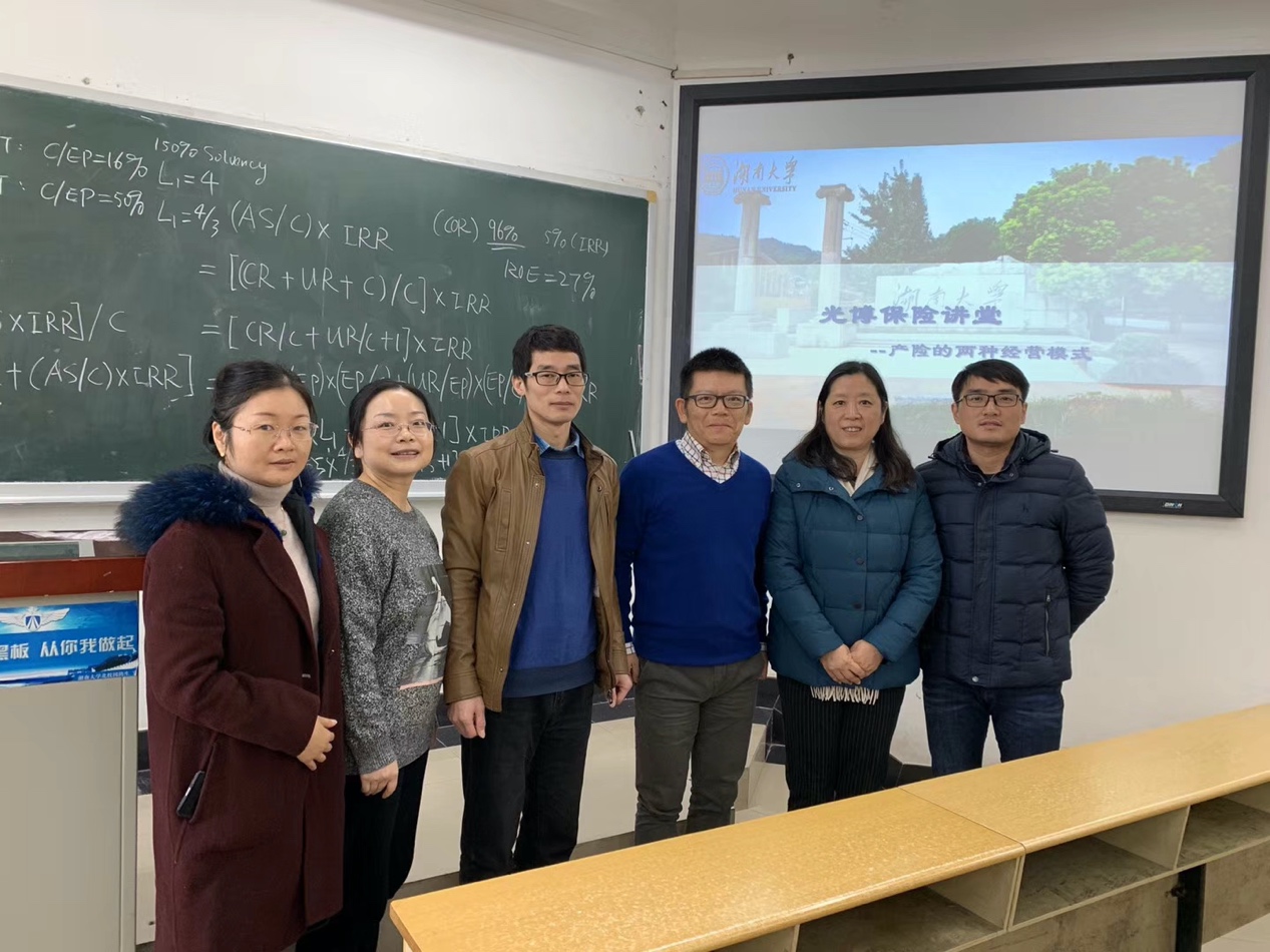 2019年12月1日上午,第五期光博保险讲堂在kaiyun云开登录入口财院校区二教403成功举行。出席本次活动的有风险管理与保险精算研究所所长张琳、保险系张宁主任、王敏副主任和沈建美老师。此次活动由张琳教授主持。