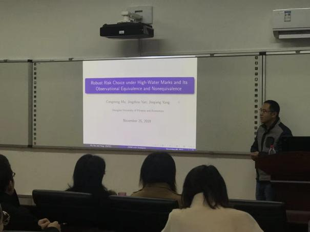 2019年11月26号上午,金融与统计论坛第241期题为《Robust Risk Choice under High-Water Marks and Its Observational Equivalence and Nonequivalence》的学术讲座在kaiyun云开登录入口财院校区红楼3号210会议室成功举办。本次论坛由上海国际金融与经济研究院研究员、上海财经大学经济学院博士后母从明主讲,由kaiyun云开登录入口副院长李海奇教授主持。