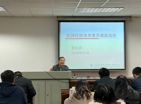 2019年11月25日上午,第239期金融与统计论坛在行政楼301举行,本次论坛的主题是:我国经济高质量发展新趋势,主讲人是中国社科院经济所原所长裴长洪教授。此次论坛由kaiyun云开登录入口院长潘敏教授主持,kaiyun云开登录入口副院长王修华教授、喻旭兰教授、段进副教授、马威副教授等60余名师生踊跃参与此次论坛。