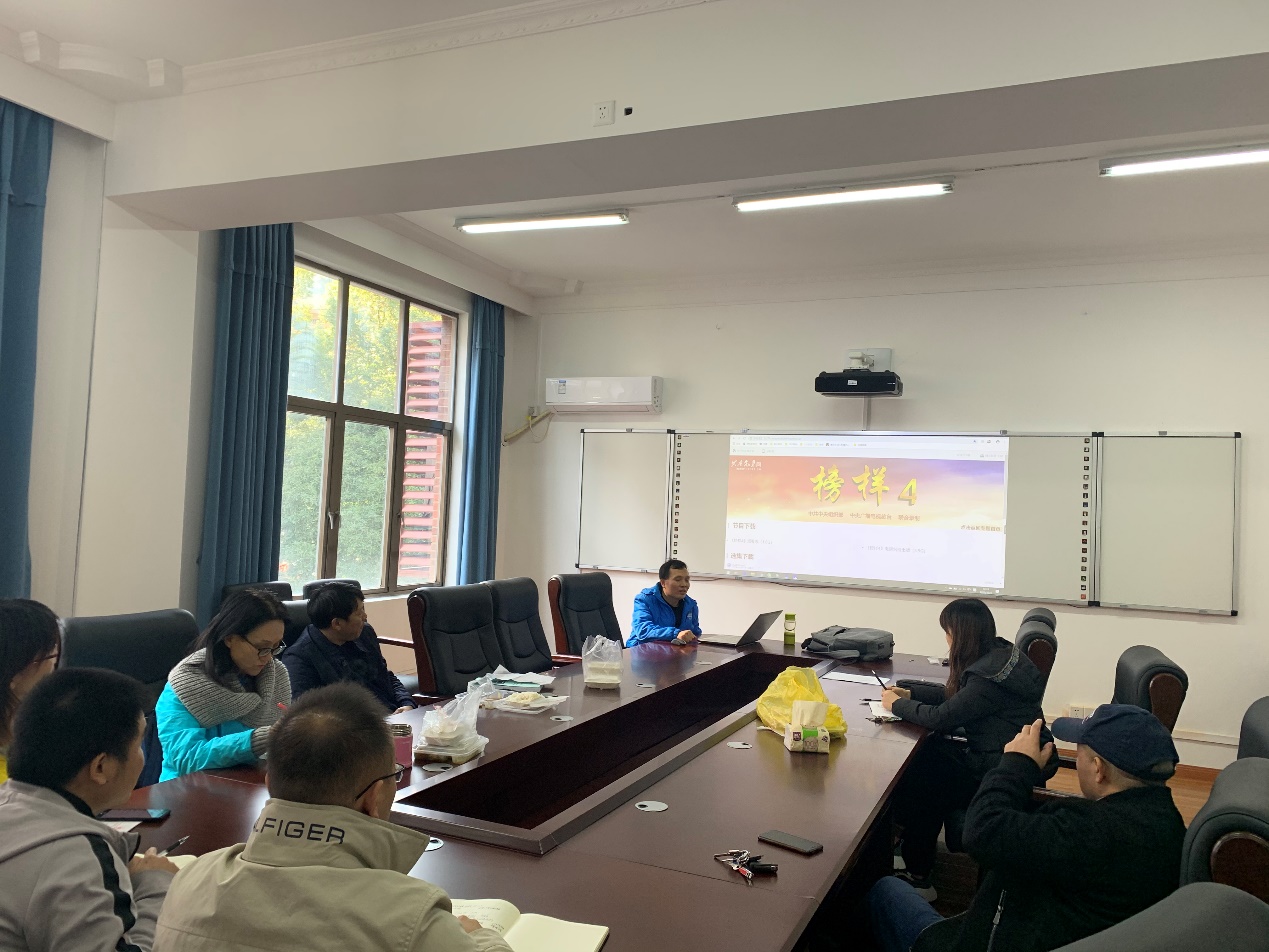 支部集体观看了由中央组织部、中央广播电视总台联合录制《榜样4》专题节目选集《嫦娥四号工程党组织》,嫦娥系列型号总指挥总设计师顾问叶培建院士、嫦娥四号探测器总设计师孙泽洲、嫦娥四号探测器测控数传分系统主任设计师刘适代表嫦娥四号工程党组织,向全国观众分享他们不忘初心、担当使命的奋斗历程。大家对“人类探测器第一次在月球背面软着陆”、“所有关键技术均为我国自主研发”、“无论是在试验室还是在发射场,党旗党徽与科研进步交相辉映”等关键点印象深刻,纷纷表示要以中国航天人为榜样,把共产党员和高校教师的初心和使命刻在心里落实在行动中。