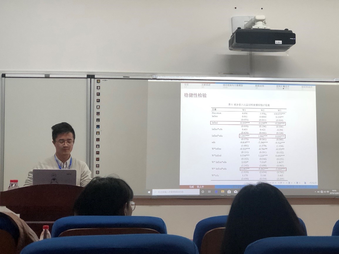 中央财经大学张展翔博士研究生进行了《产业政策与僵尸企业形成》的报告。2018年12月21日召开的中央经济工作会议上总结:我国现阶段经济运行的主要矛盾依然被诊断为供给侧结构性的,而合理地处理僵尸企业则是供给侧结构性改革的关键环节,报告从实际出发,围绕着产业政策对僵尸企业的形成机制进行详细了的分析,并通过实证研究从所有制层面、企业层面、企业所在地区层面进行了更深入的异质性分析。