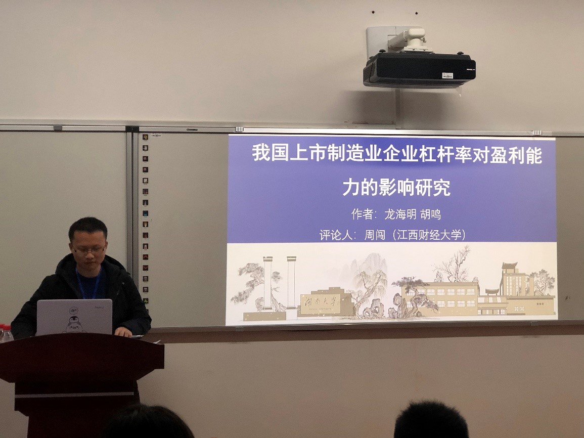 分论坛下半场由kaiyun云开登录入口喻旭兰教授主持,首先由kaiyun云开登录入口胡鸣硕士研究生进行了《我国上市制造业企业杠杆率对盈利能力的影响研究》的报告。在近年来,在“债务—投资”驱动的经济增长模式下,企业杠杆率水平与效率水平走势相背离问题越来越突出的情况下,从微观角度对企业杠杆率在不同债务利用效率水平下体现出的作用进行了研究,并深入探讨了是否存在最优的企业杠杆率水平以提升企业盈利能力以及金融资源配置给具有什么特征的企业是有效率的两个问题,其研究结果对于去除企业不良杠杆,使其回归合理水平,防控债务风险具有十分重要的意义。