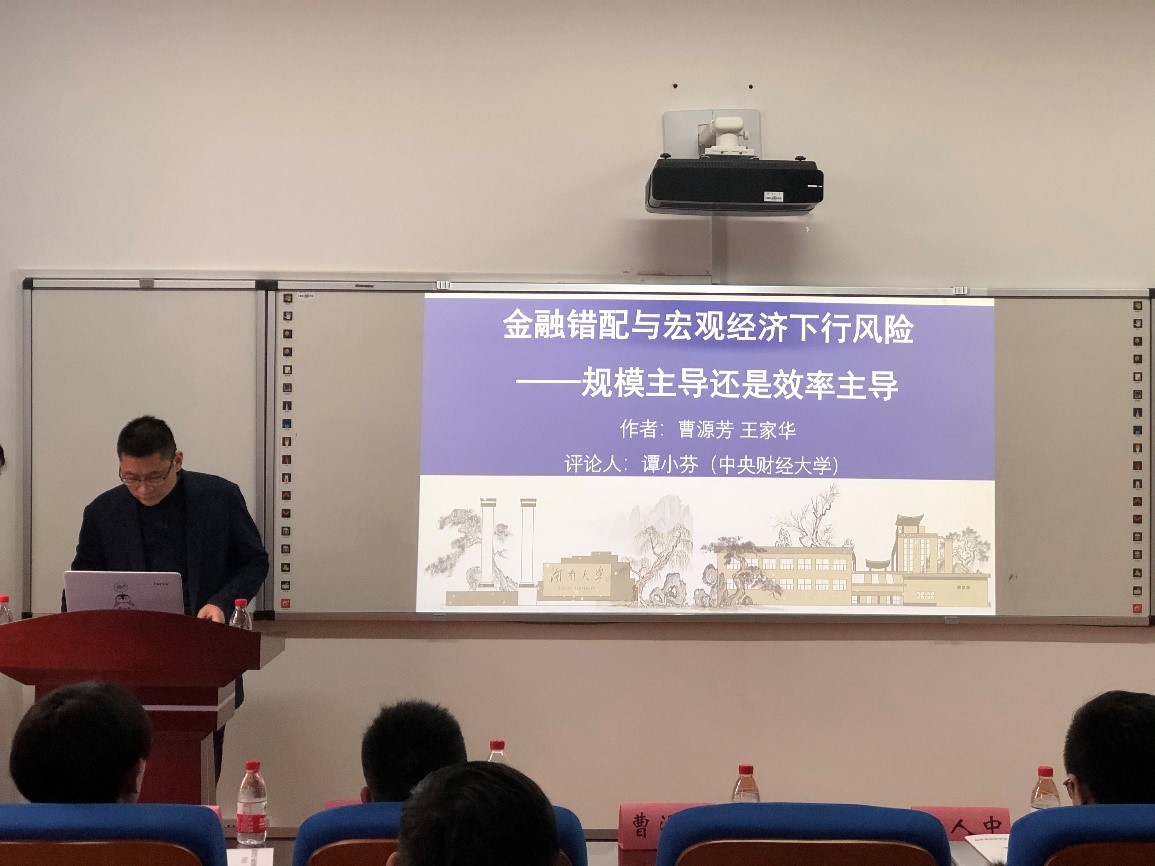 分论坛上半场由中央财经大学谭小芬教授主持。南京审计大学曹源芳副教授进行了《金融错配与宏观经济下行风险—规模主导还是效率主导》的报告。在我国经济步入新常态,金融错配引致的宏观经济下行风险日益凸显的背景下,本文构建了我国宏观经济下行风险的量化指标体系,梳理了金融错配引发宏观经济下行风险的逻辑机理,论证金融错配对宏观经济下行风险的重要影响,实证研究了金融错配规模效应与效率效应对宏观经济下行风险的异质性影响,从而为化解宏观经济下行风险提供新视角。