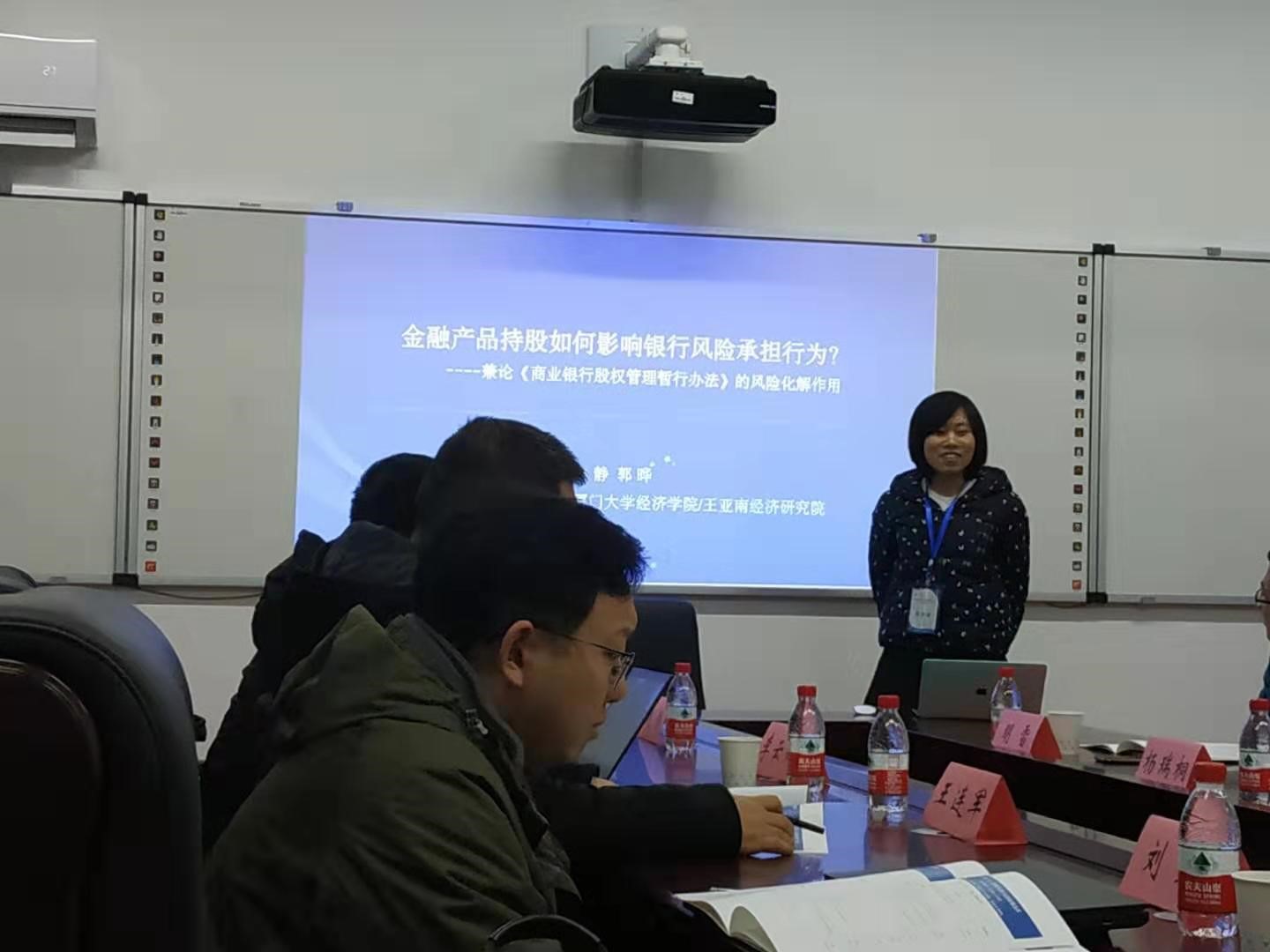 分论坛上半场由kaiyun云开登录入口的赵静助理教授基于“为什么监管越来越严格,银行的风险却越来越大?”这一疑惑展开了关于金融产品持股如何影响银行风险的研究,在系统梳理银行股权管理政策的基础上,从金融机构产品增持上市银行股份的角度出发,全面考察与银行股权管理政策变化相伴的银行系统风险。并且根据研究结果,得出金融产品投资上市银行时应该合理持股比例,加强银行股权管理、防范“股东乱象”行为的启示。