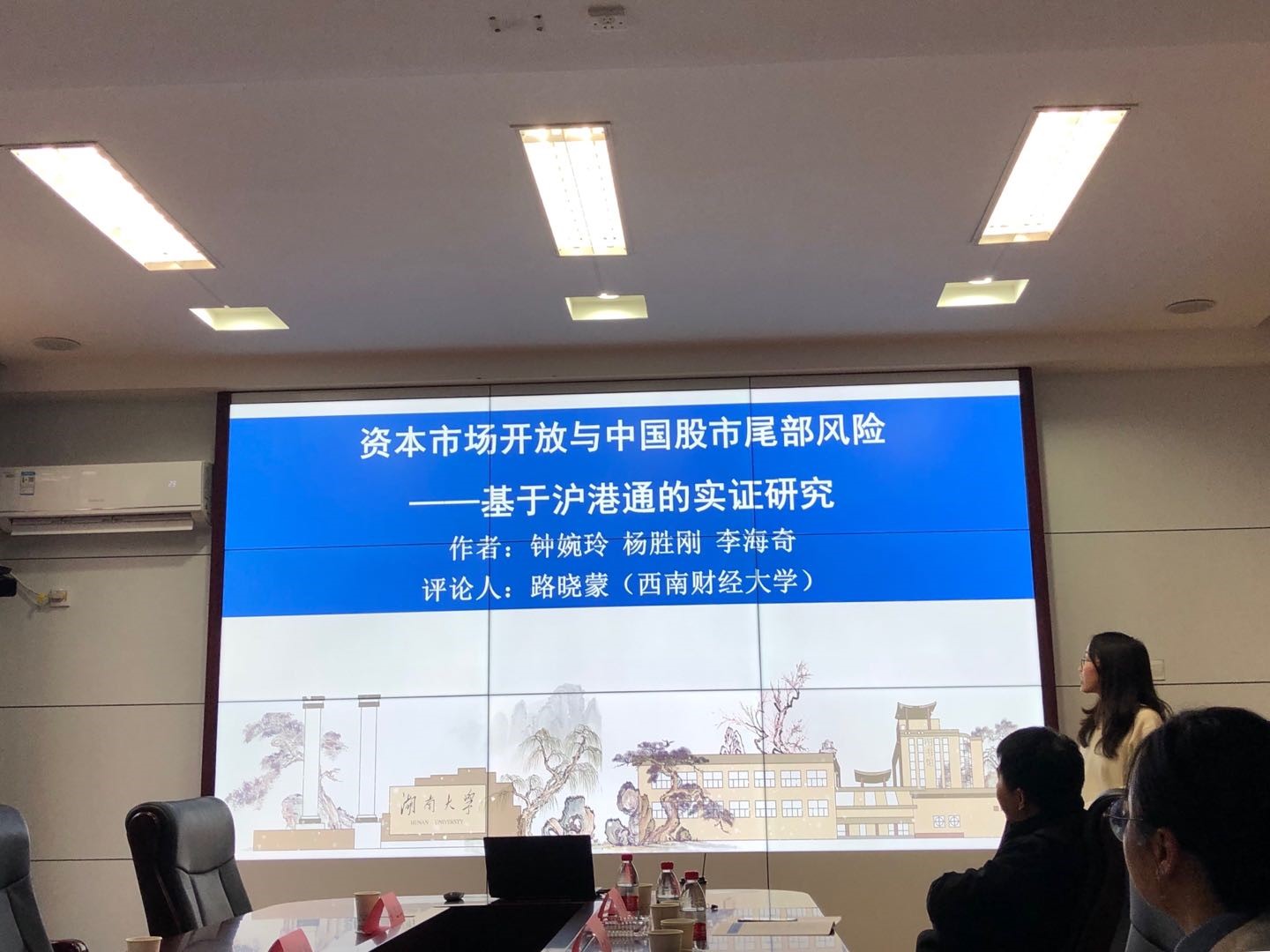 kaiyun云开登录入口钟婉玲博士报告的题目是《资本开放市场与中国股市尾部风险—基于沪港通的实证研究》,文章利用了Massacci(2017)时变POT模型和非参数面板数据政策评估方法来探究了沪市整体尾部风险。来自西南财经大学的路晓蒙博士对文章提出了深刻的见解和建设性的意见。
