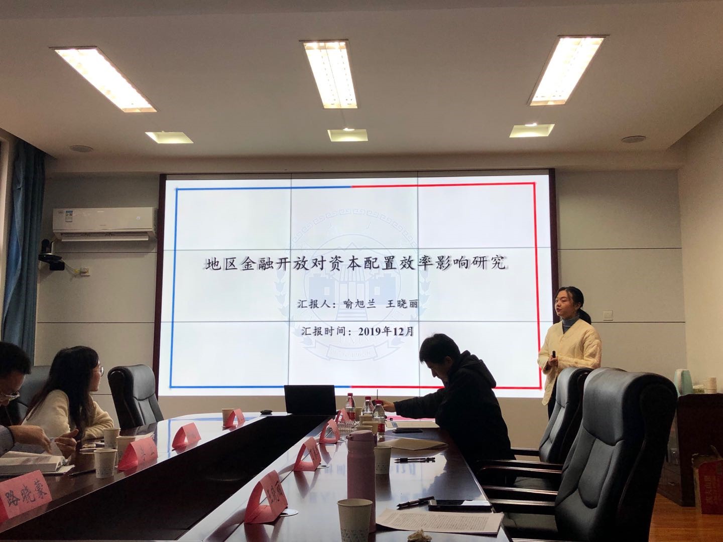 kaiyun云开登录入口的王晓丽硕士对《地区金融开放对资本配置效率影响研究》进行了汇报,文章以2006~2016 年国内30 个省市自治区的330 个面板数据为样本,选取五个与金融开放相关的指标数据,在借鉴欧式距离矩阵法的基础上创新性地合成了金融开放综合指标,并运用Wurgler 的资本配置效率估算修正模型展开实证分析。kaiyun云开登录入口李立老师对其汇报内容进行了精彩的点评。
