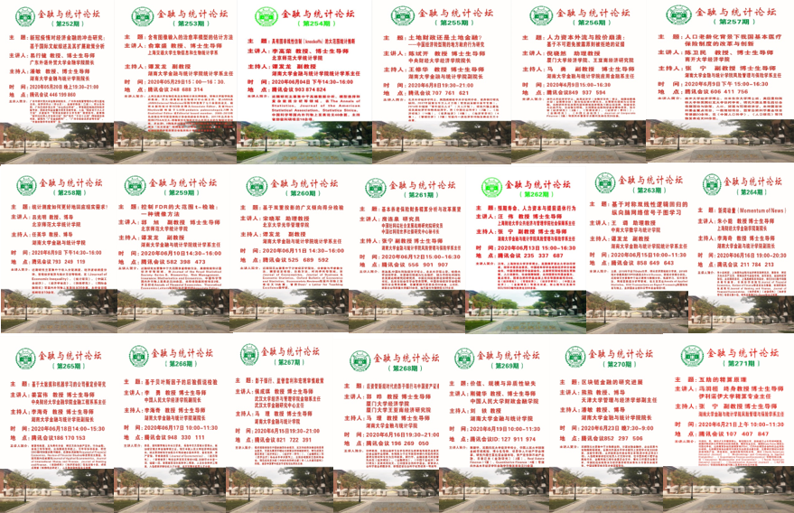 为加强学术科研交流,营造浓厚的科研氛围,kaiyun云开登录入口于2020年5月20日—6月23日举办“金融与统计论坛”线上学术活动月,本次活动月共举行讲座20场,邀请了来自北京大学、中国人民大学、南开大学、武汉大学、厦门大学、中国社科院、中央财经大学、上海财经大学、北京师范大学、天津大学、广东外语外贸大学、美国伊利诺伊大学等国内外知名高校20位专家学者开展学术讲座。共有来自校内外的专家学者与本院学生超过1500人次通过网络会议平台参加。