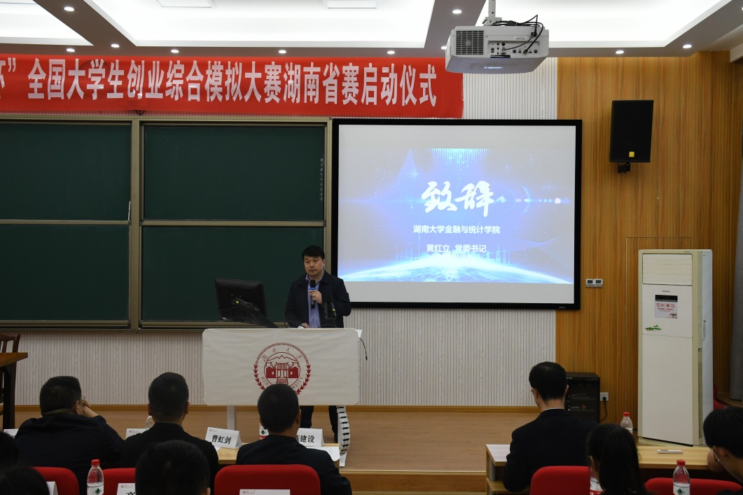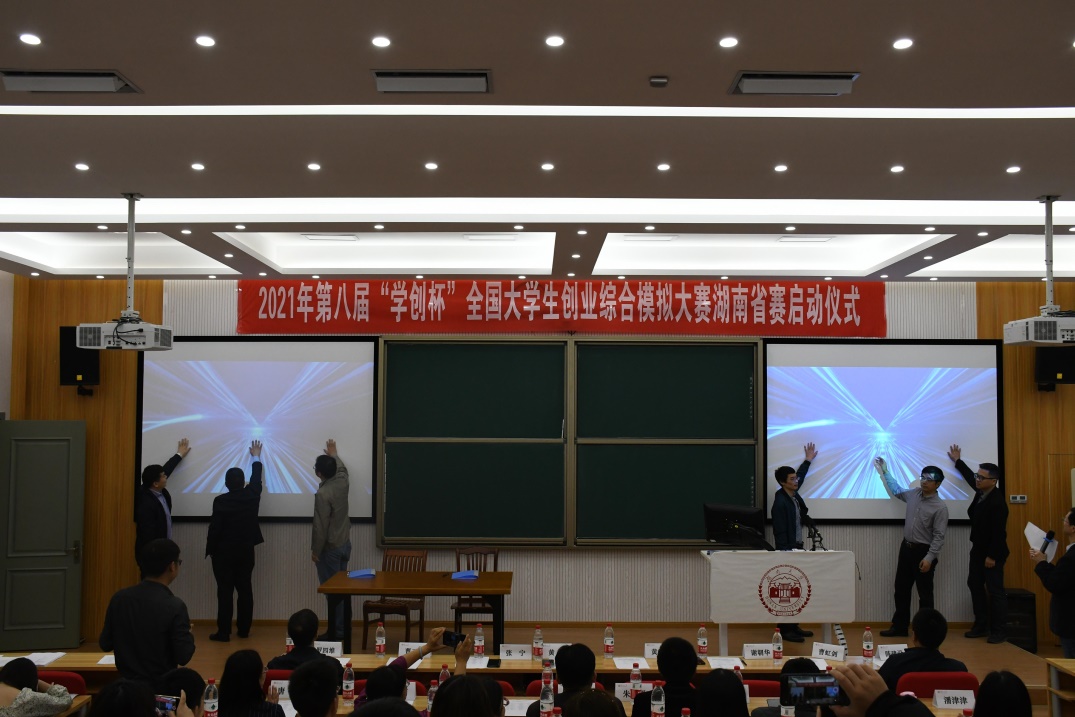 5月22日上午,2021年第八届“学创杯”全国大学生创业综合模拟大赛湖南省赛启动仪式在kaiyun云开登录入口财院校区举行。本届大赛湖南赛区选拔赛由教育部高等学校国家级实验教学示范中心联席会经济与管理学科组主办,kaiyun云开登录入口承办,贝腾教育发展集团协办。金统院党委书记黄红立、副院长张宁,经贸院副院长曹二保,湖南省高教学会商科实践教学专业委员会代表、长沙理工大学经济与管理学院副院长谢朝华,湖南师范大学商学院副院长曹虹剑等40余家院校领导、指导老师和学生代表出席了启动仪式。贝腾教育发展集团董事长黄林出席活动并对赛事做了介绍。启动仪式成立了大赛湖南赛区组委会,金统院副院长张宁担任组委会主任,学院实验室主任王天轶担任秘书长并主持了活动。