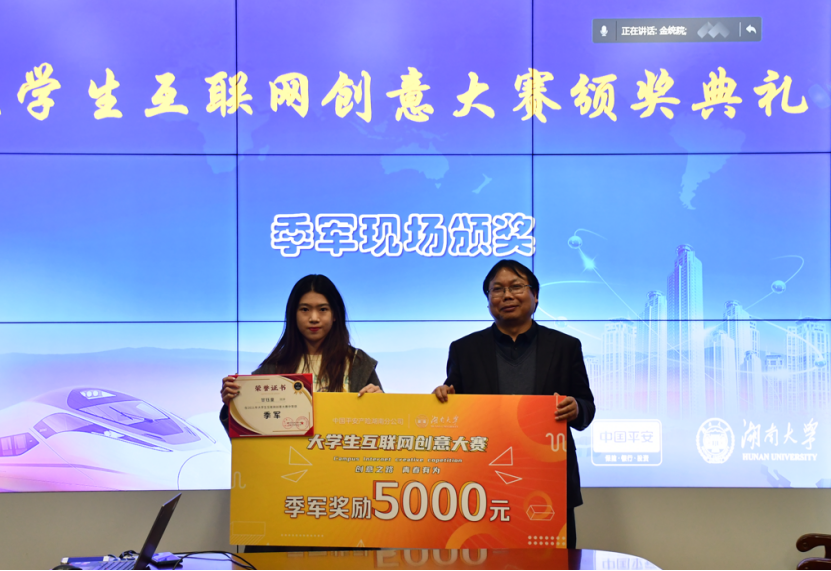 经验分享环节,季军团队获奖代表、新闻与传播学院甘钰童分享获奖感言,“这一程大赛的旅途走过春夏,在秋冬收获,在比赛的过程中,我们全情投入,做到我们所能做到的最好。感谢平安对我们参赛方案的支持与帮助,感恩遇见的每一个人。“亚军团队获奖代表、工商管理学院黄敏提到,”这次比赛经历让我们体会了在一个大型平台上进行活动策划、活动运营,是一个怎样的状态,以及会遇到哪些问题、遇到问题又该如何调整。这对于我们团队成员未来的求学、求职都有着非常大的帮助。希望未来有机会能够参与到更多类似的优秀的活动当中。”冠军团队获奖代表、大赛MVP获奖者、kaiyun云开登录入口田醴涵感叹拿到大赛的冠军来之不易;感谢kaiyun云开登录入口和平安产险湖南分公司,给了我们湖大的学生一个很好的平台,让我们能够参与到大型公司真正的运营项目中去;感谢作品指导老师罗鹏老师以及赛方老师、平安公司的工作人员,得益于他们很多实质性的建议,将我们不太成熟的方案在很多细节方面进行完善;感谢团队成员们,在竞赛期间齐心协力,精益求精,才有了今天完美的结果。