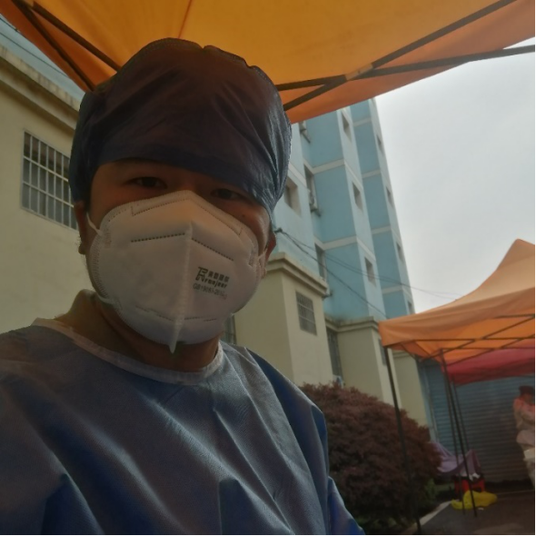 张老师说:“那几天风大雨大,很冷。但是能为学校抗疫做点事情,是非常有意义的。当听到学生们不断的说谢谢,我很感动。尤其是我的学生见到我,他们很开心。我告诉他们老师和你们在一起,我们渡过难关!”