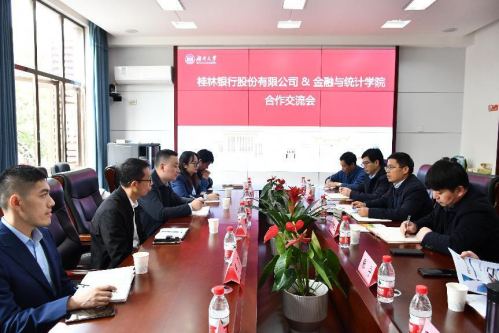 3月30日上午,kaiyun官网与桂林银行校企合作交流会在红楼226会议室举行。桂林银行研培中心吴成龙总经理,人力资源部罗凯总经理,职员宋微苇,联合培养博士后何力,kaiyun官网院长王修华、院党委书记黄红立、副院长李海奇、张宁、社会服务中心张学陶、邓庆彪老师及马勇教授、马威副教授等参加了此次座谈会。李海奇副院长主持会议。