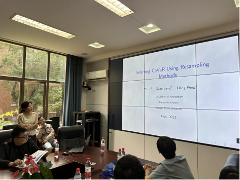 厦门大学冷旋副教授带来了题为“Inferring CoVAR Using Resampling Methods”的报告。她首先从精彩的经济故事出发,深入浅出地讲解了传统分位数估计方法在研究CoVaR中的缺点和问题。随后,她提出一种两步分位数回归方法,基于弱外生条件得到了相应的渐近性质。