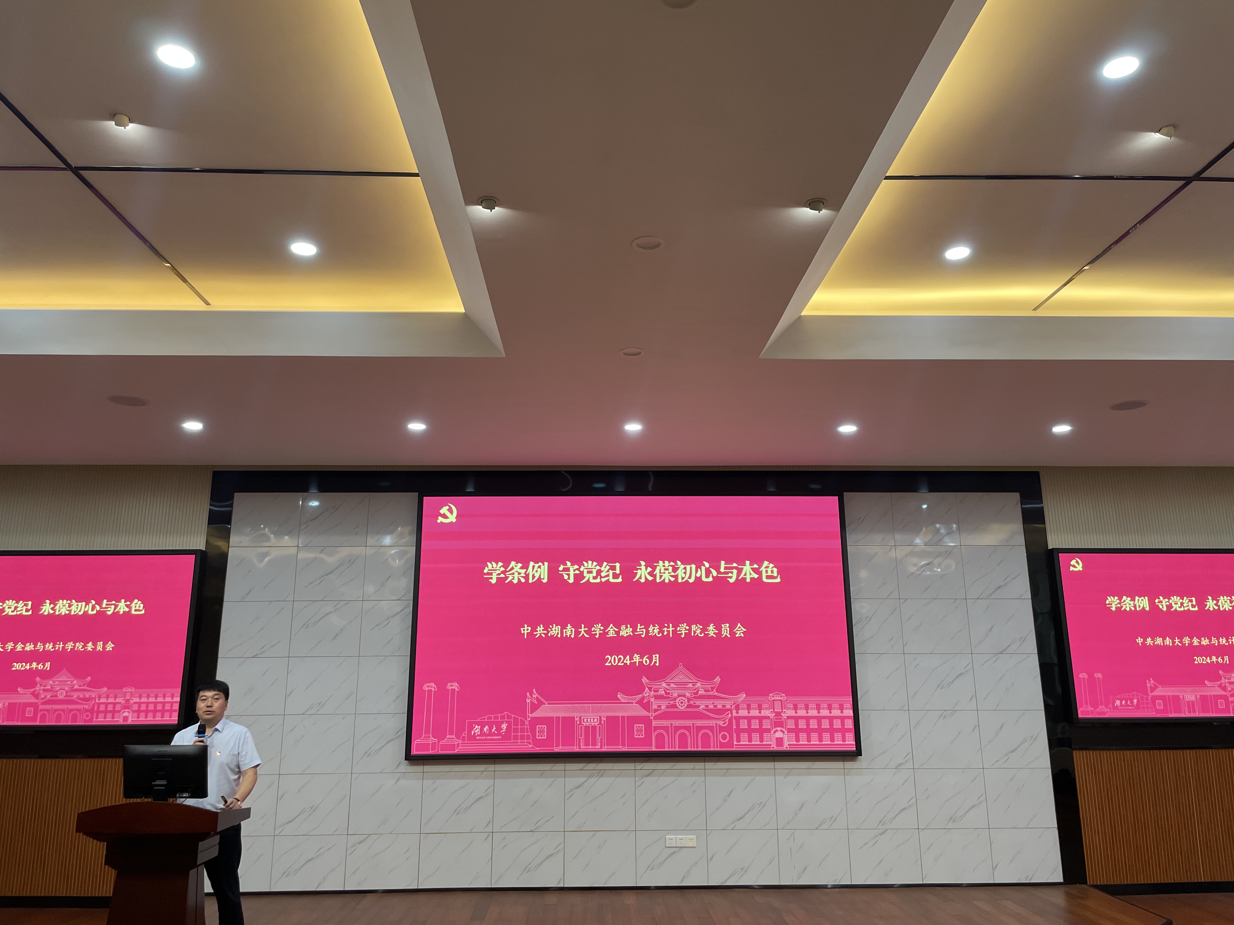 6月20日,kaiyun云开登录入口“学条例,守党纪,永葆初心与本色”2024届毕业生党员党课在财院校区老食堂二楼报告厅举行,本次党课由学院党委书记黄红立老师主讲,毕业班辅导员刘斌、全体毕业生党员参加。