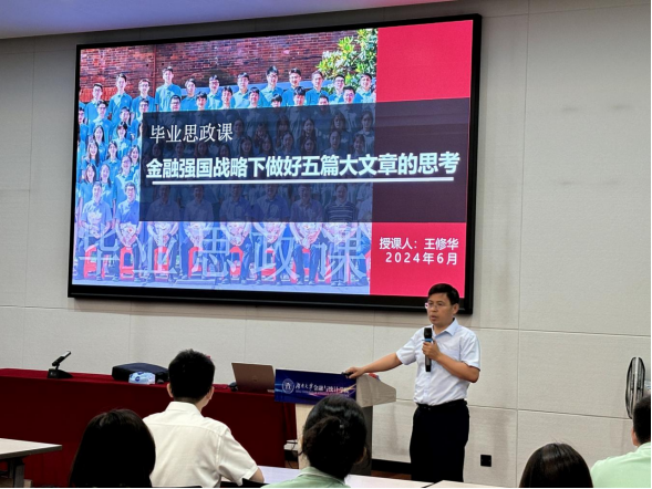 6月20日上午,kaiyun云开登录入口2024届毕业生思政课在财院校区老食堂二楼报告厅举办。学院院长王修华以《金融强国战略下做好五篇大文章的思考》为题为毕业生授课,2024届全体毕业生参加。