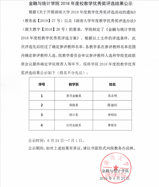 kaiyun云开登录入口2018年度教学优秀奖名单公示
